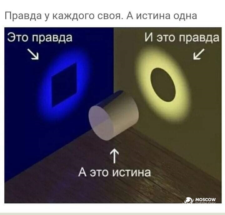 P.S Комментарий к фото: Мы привыкли считать, что есть «правда» и есть «ложь». А ещё откуда-то вдруг появилась истина. В современном общечеловеческом понимании (двоичном) куда её вставить? Ну да, логично же что правда=истине и противоположна лжи! И все так считают. А разве может быть иначе? Увы, может! Наша объективная система троична!? Не верите? Хорошо… Просто для того, что бы не резать Вам слух давайте заменим слово «истина» на слово «верно» это же логично? Так вот: Верная правда верно? Верно! Но и верная ложь это то же верно! А теперь вернём значение и понимаем, что выходит : Вся правда является лишь частью истины так как другую часть этой же истины занимает ложь! Мы хотели запихать отличное «третье» в нашу двоичную систему мировосприятия под видом «второго», но эта ошибка нельзя ни в коем случае исключать «золотую середину» древних из своего понимания и обрекать тем самым себя на вечный поиск этой самой Абсолютной истины скрытой под всевозможными проявлениями наших разнообразных действующих общечеловеческих правд!